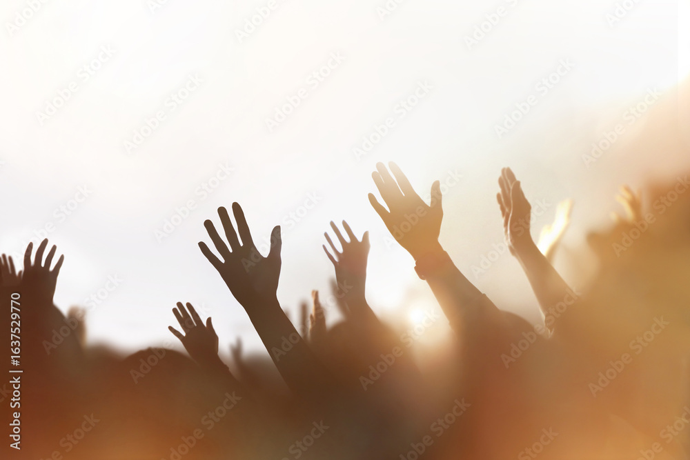 Canvastavla Christians passionately praising, praying, and worshipping, a background of a church gathering filled with the Holy Spirit, and a cheering crowd concept