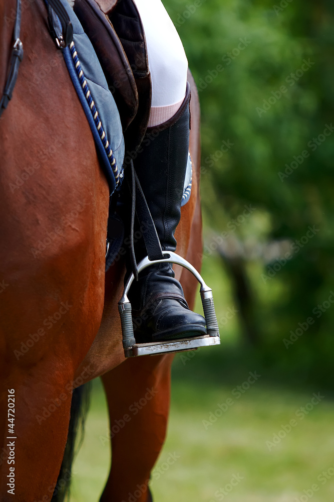 Canvastavla Foot of the athlete in a stirrup