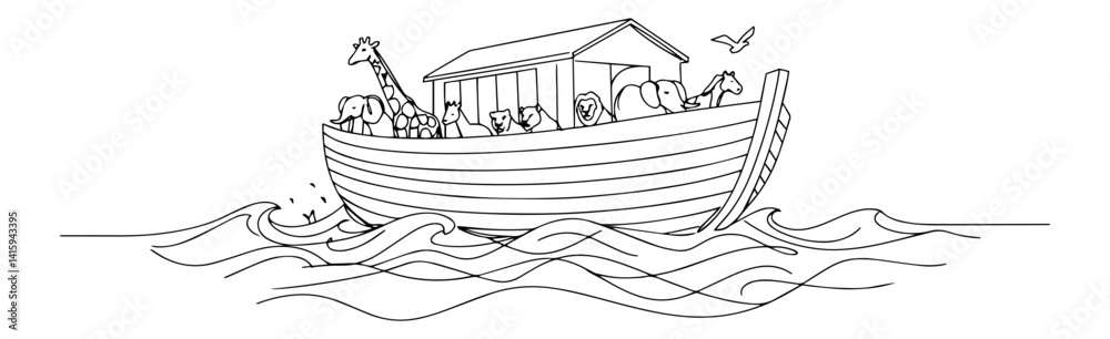 Canvastavla hand drawn vector of noah's ark with animals, minimalist biblical flood story il