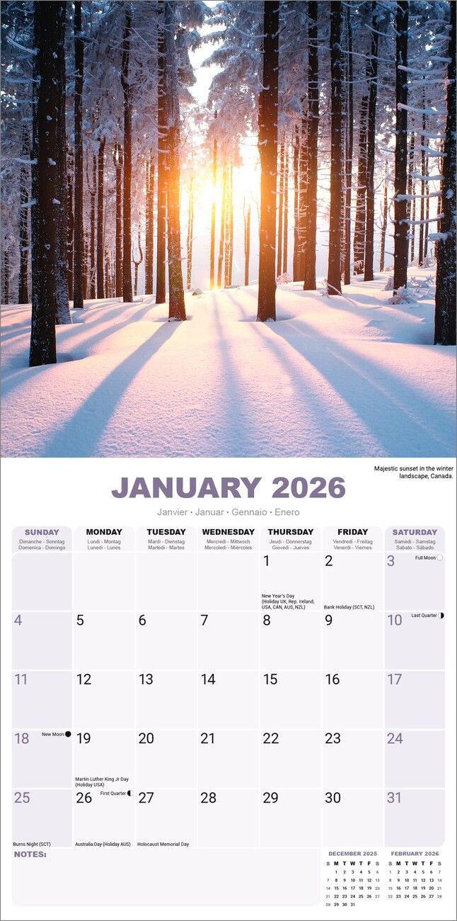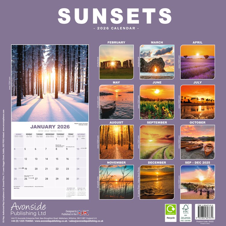 • Kalender Sunsets kan hängas på vilken vägg som helst