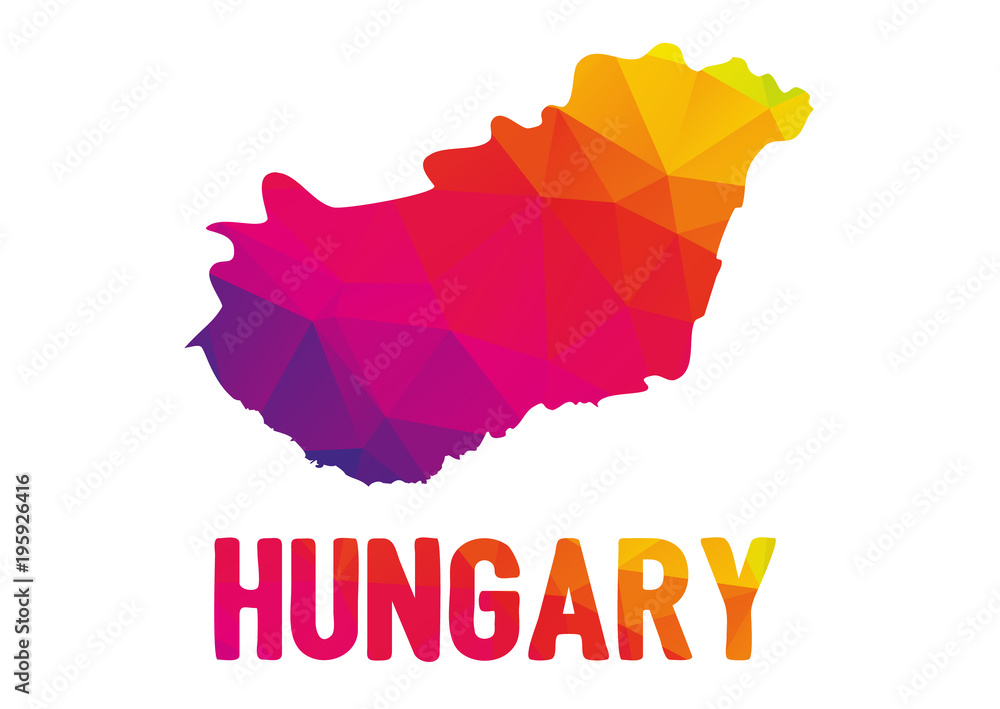 Klistermärke Low polygonal map of Magyarország (Hungary) with sign Hungary, both in warm colo