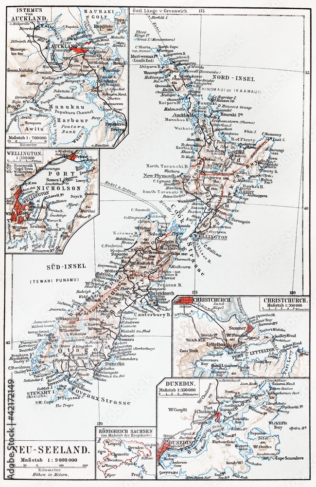Klistermärke Vintage map of New Zealand at the end of 19th century