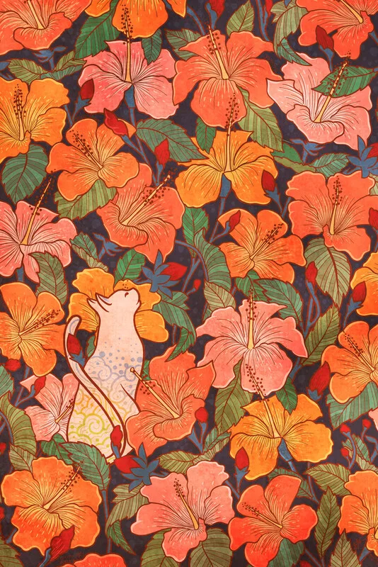 Klistermärke Cat and hibiscus