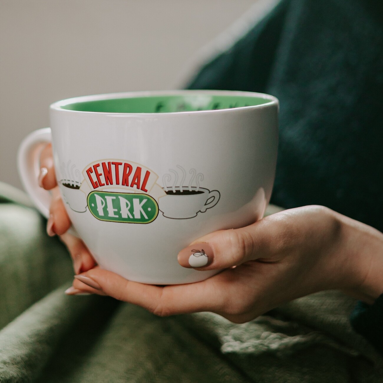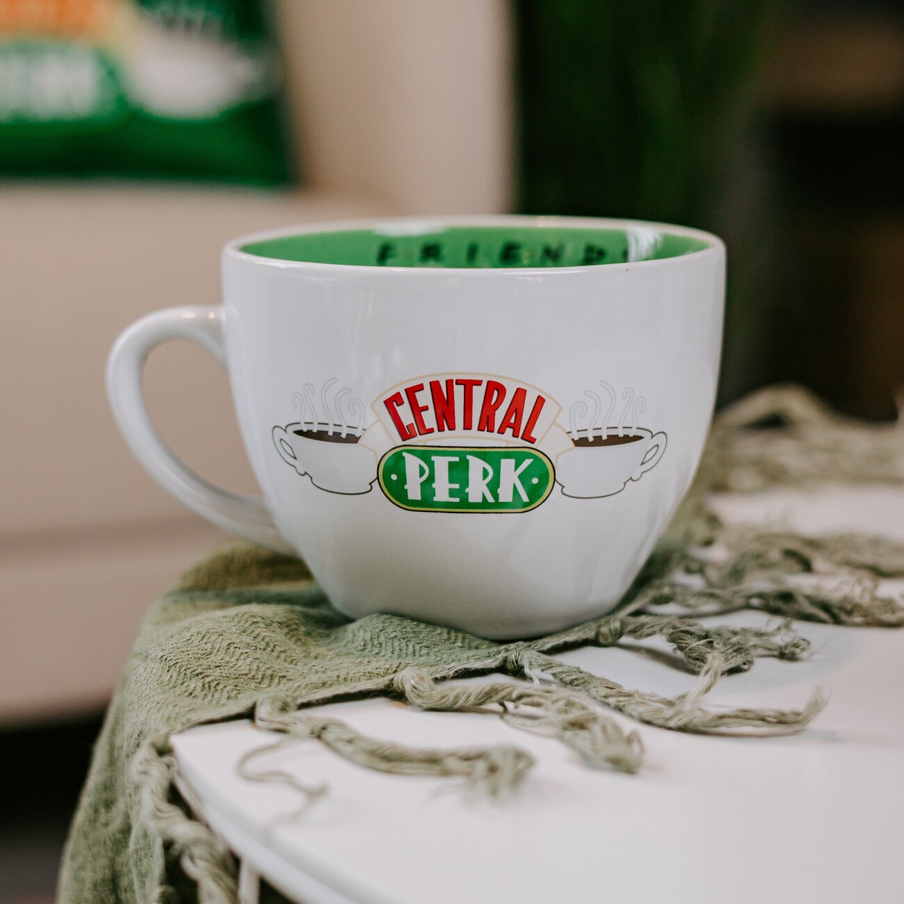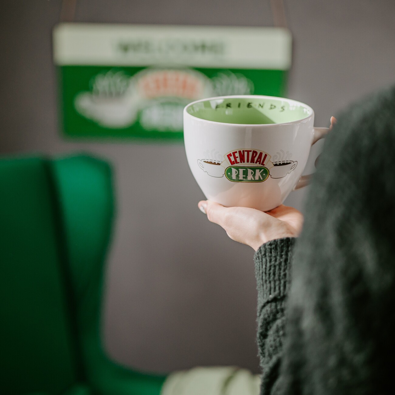 Prova vår XXL-mugg med 630 ml kapacitet och det ikoniska Central Perk-motivet, en måste-ha-tillbehör för alla inbitna fans av den legendariska F.R.I.E.N.D.S.-serien!