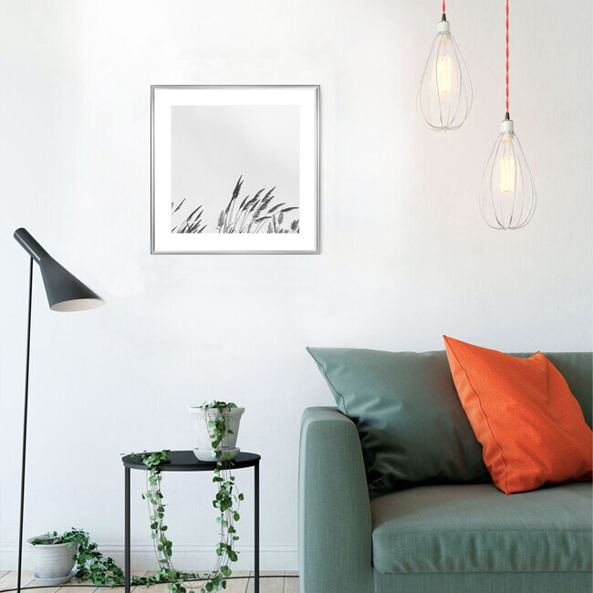 Högkvalitativ europeisk ram med plexiglas och MDF-skiva. På baksidan finns stålhandtag på båda sidor för upphängning. Innehåller inte passepartout.