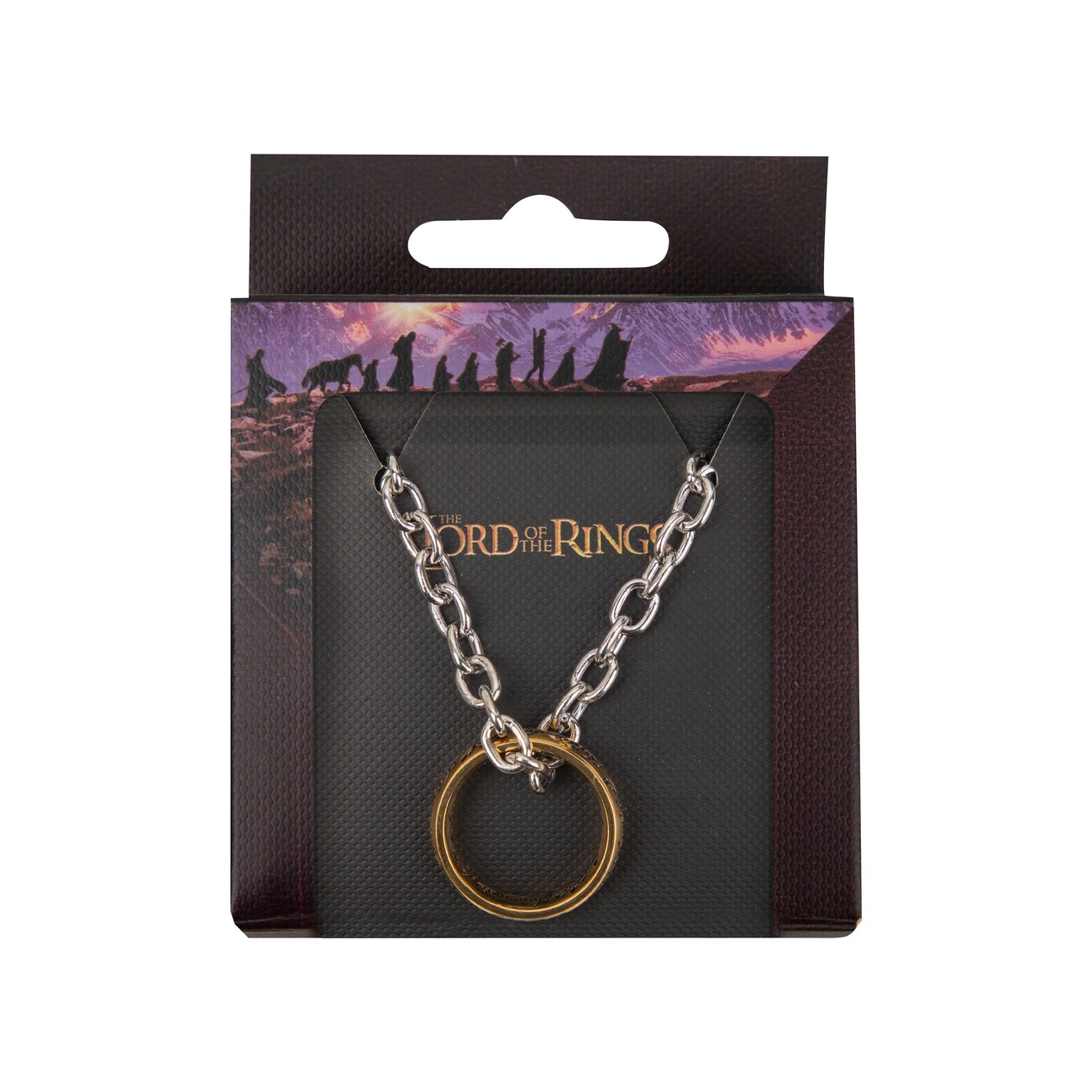 Den ikoniska En Ring-berlocken på en kedja – ett måste för varje Sagan om Ringen-fan. Ringen är gjord av rostfritt stål och kedjan av järn. Kedjelängd: 60 cm. Ringstorlek: 1,8 × 1,8 × 0,6 mm.